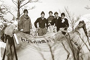 「わらじの仲間」という会名は、溪谷からの山旅を会のテーマとし、谷歩きにつきものであり、また日本古来の履き物として知られていた、“わらじ”をシンボルにしよう、ということから名づけられました。