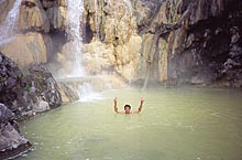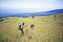 樹林帯を抜けだらだらと登り、1950mのキャンプ指定地が今日の幕場。ブルハン君はわたしよりも若く、荷物だって軽い。なのに呆れるほどに軟弱な男だった。幕場に着きペンリさんに付いて沢に水を汲みに行くが、日当たりがよく乾季で雨も降っていないため、当然水が涸れていて、水溜りの水を汲んで帰る。食事は拷問のようにたくさん作ってくれるので、「もうお腹いっぱい、充分だからあなたたちもどうぞ」と拙い英語で言っても遠慮しているとしか思ってくれず、「大丈夫、大丈夫食べて!」とニコっと笑顔で返されてしまい、ため息をつきながら無理やり腹に押し込むということが3日間続いた。ご飯を食べ終えると、あとはゆったりとした時間を存分に楽しむ。深い静寂のなかで満天の星空を見上げ至福の時をじっくりと味わった。考えてみれば冬合宿の飯豊以来久々に山で過ごす夜だった。遠い異国の地で、山はいいなあとしみじみ実感してしまった。南国に来たのだから南十字星を確認しようと「サザンクロスはどれ?」一生懸命言ってみたがどうしても通じなかった。違う呼び方なのかな、そんなに発音が悪かったのかな。