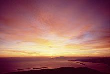 バリ島に滞在して10日ほど過ぎると、気持ちにもだいぶ余裕が出てきてせっかくここまで来たのだから山に登ろうという気持ちが芽生えてきた。バリ島にもバリ・ヒンドゥー教の聖なる山「アグン山(標高3142m)」があるが、4月はアグン山の麓にあるブサキ寺院で宗教儀礼が多くその際には登山はできないという話を聞いたので、こちらは諦め岳人2003年8月号に載っていた隣島ロンボク島にあるリンジャニ山に挑戦してみることにした。ロンボク島へはバリ島から飛行機も出ているが、時間もあることだし船旅を選択。わたしが滞在していた内陸部のウブドから島の南東部パダンバイという町の港までバスで1時間、そこから船で5時間の旅で料金は日本円で1500円弱。日本を飛び立ってバリ島には夜到着し、翌日すぐに内陸の町に移動したので、島に滞在しているというのに、この日初めて海と対面した。海に来ると妙に気持ちが興奮してくる。開放的で気持ちよくて360度の青空とじりじり照り付ける大きな太陽に叫びたい気分だ。この船旅はとても素敵だった。雄大な景色はもちろんのこと、飛び跳ねるイルカの群れにも出会うし、バリ人とロンボク人の船員は(自称トミナガさんとアラナガさん)優しくて陽気で、楽しい時間を過ごせた。夕焼けに浮かび上がるアグン山のシルエットは幻想的な光景だった。その姿はまるで海上に富士山が浮いているよう。