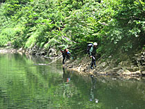 穏やかな流れに入ると、防虫ネットにウインドブレーカーそして軍手という防備をしても、アブは軍手の上からも容赦なく刺してくる。そのアブは林道から車を止めた広場までしつこくまとわりついてきた。